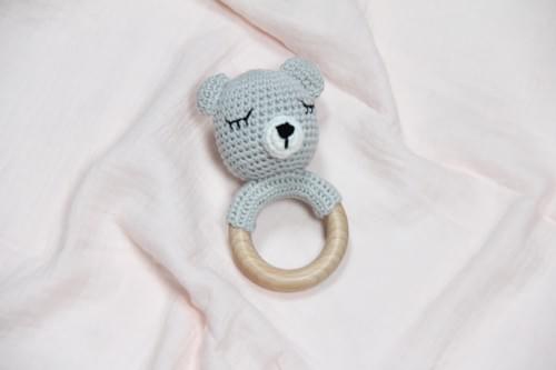 Handcrafted Crochet Bear Baby Gift Set with Wooden Toys