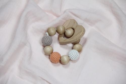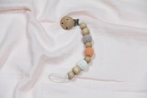 This beautifully designed gift set includes a handcrafted crochet fox wooden rattle, a baby pacifier clip holder, and a wooden teething bracelet. All items are elegantly packed in a kraft paper gift box with a transparent window, making it a perfect choice for gifting.