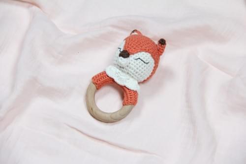 Handmade Crochet Fox Baby Gift Set with Wooden Toys